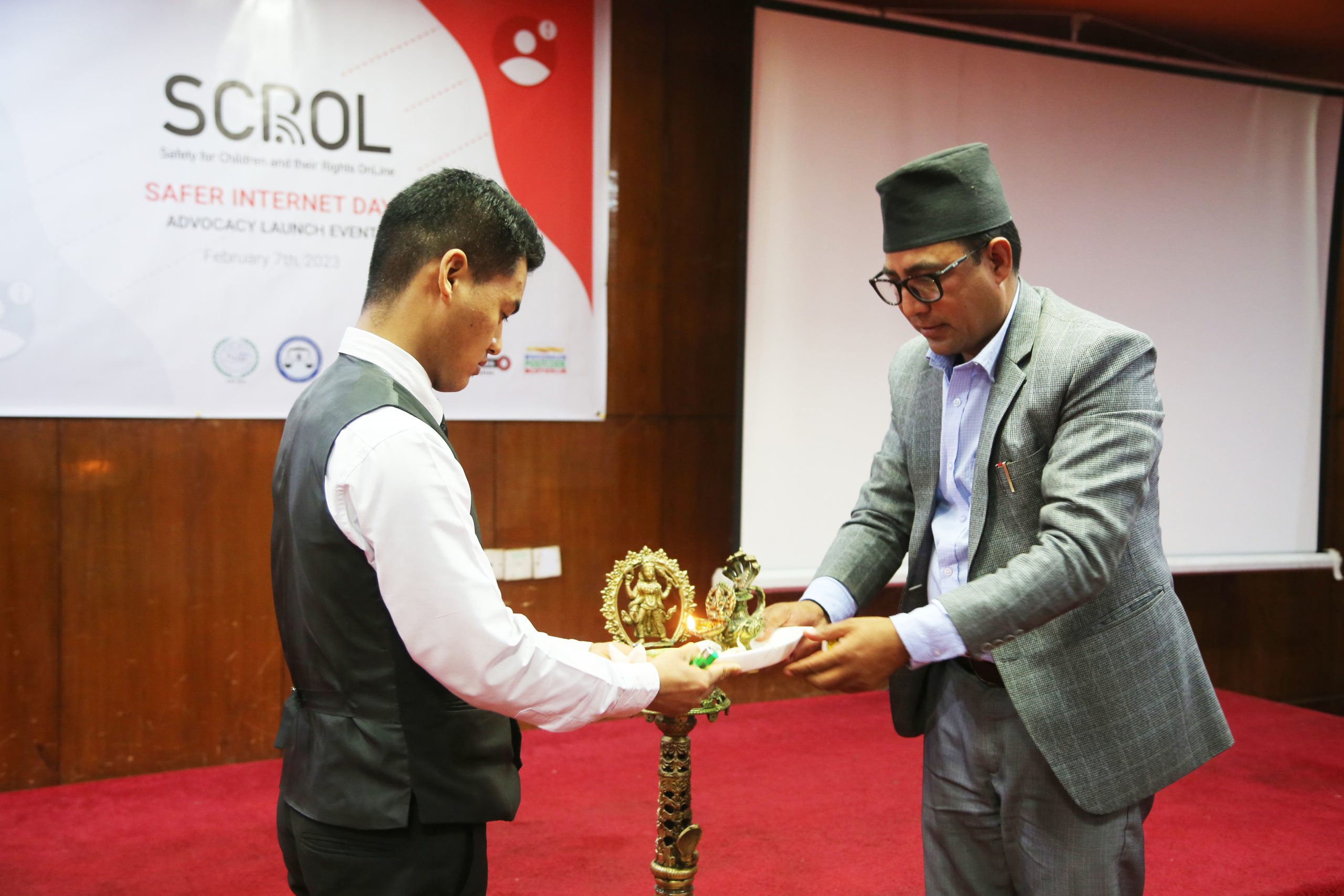 On 7th February, 2023 the SCROL project in Nepal observed the ‘Safer Internet Day’ by launching its advocacy initiatives. The event, held at Kathmandu, saw the participation of officials namely, Mr. Nabinda Aryal (Senior Superintendent of Police, Cyber Bureau), Mr. Indra Prasad Mainali, (under secretary of the Ministry of Information and Broadcasting) and Mr. Subash Khadka (CEO, Internet Service Provider’s Association, Nepal). The Chief Guest was Mr. Bam Bahadur Baniya (Vice President, Child Rights Council).