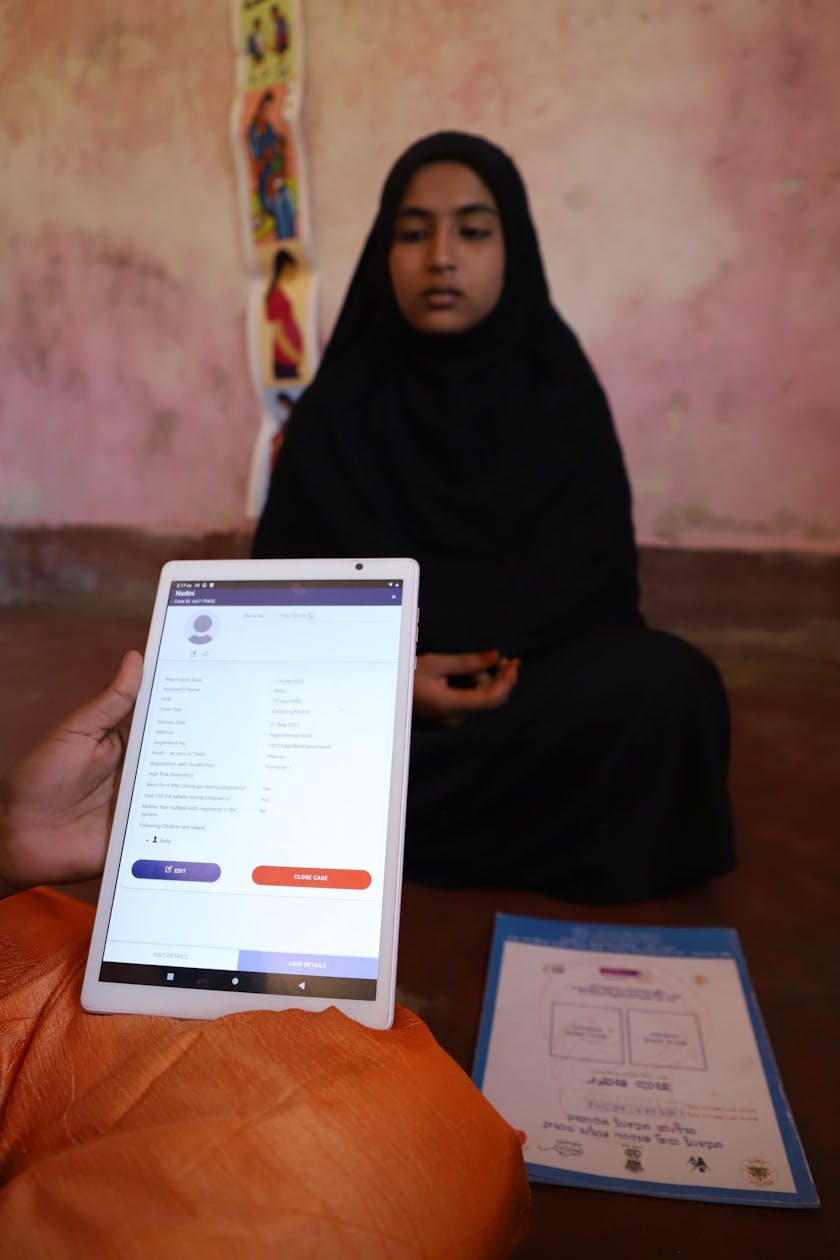 After using the app, her haemoglobin levels improved to 11 and she now consumes four nutritious meals a day. The app also made her aware of post-natal care and the ill effects of early pregnancy. We supported her in accessing a ‘mother card’ which helps her avail services from the local health centre free of cost.